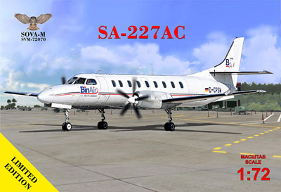 ■Fairchild Swearingen(米国) が開発した19席クラスのリージョナルエアライナー(コミューター機)。SA‑226(Metro II)の改良型で、エンジン強化・重量増加・航続距離延長などが行われています。細長い胴体とT字尾翼、双発ターボプロップという独特のシルエットが特徴。。