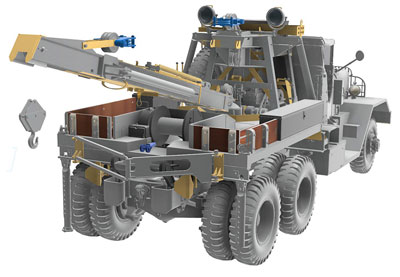 ■シリーズ5のM1A1は1943年に登場し、約3,500台のシリーズ5レッカー車が製造されました。最も顕著な特徴は、新たに搭載されたフルパワーのクレーンであり、軍用仕様の車両前部とキャンバストップ、折りたたみ式のフロントウィンドスクリーンを備えたキャブが組み合わされていました。さらに本キットは運転手とその助手2体のレジンフィギュア、3Dプリントパーツのキャンバストップパーツが追加されお値打ち感あるセットです。臨場感あるフィギュアと実感のある3Dプリントパーツがより実車に近い迫力を醸し出すことでしょう。