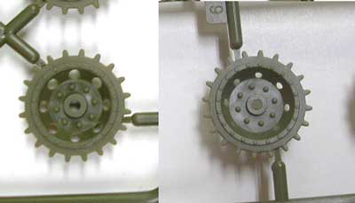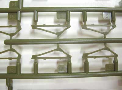 ![]() パーツ全体です。色を付けた部分が不要パーツです。 また、このキットにはマークV(A13Mk.T)に入っていたベルトキャタピラ の代わりに組み立て式のキャタピラが入っています。 ![]() 砲塔の新規パーツです。 ![]() ![]() 砲塔本体はスライド金型で側面のリベットもきっちり抜けています。 増加装甲装着用のリブも注目です。 ![]() 側面の増加装甲です。繊細なリベット処理です。 ![]() 増加装甲の支持フレームです。 ![]() 防楯増加装甲です。この戦車の顔を特徴付ける部分です。 ![]() 発炎筒の基部を砲塔リング前面も新規パーツです。 ![]() サンドシールドと車体前面増加装甲です。 ![]() スプロケットも新規パーツが入っています。左が新規です。 肉抜き穴が拡大しているのがわかります。 ![]() ![]() キューポラーは後期型と初期型が選べます。新規パーツに後期型の 円筒型キューポラーが入っています。 ![]() エッチングパーツです。 ![]() デカールです。見やすくするため画像処理しています。 ![]() カラーの塗装図が付いています。フランス戦と北アフリカ戦です。 |