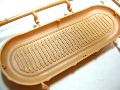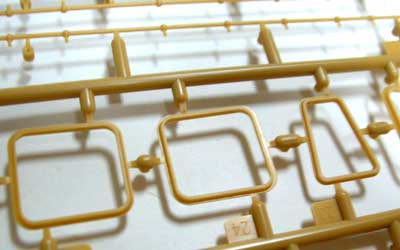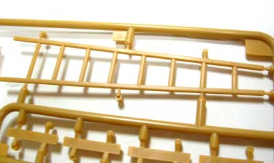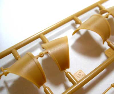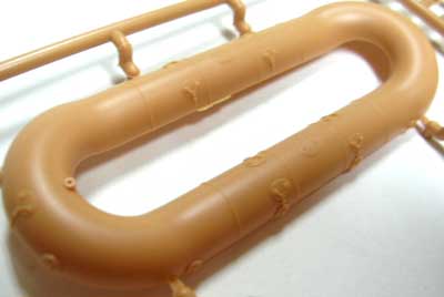 ![]() 大きく印象の変わる操縦席前面の窓です。透明窓にすると内部が 良く見えそうです。 ![]() 窓には窓枠が別パーツとなっています。 ![]() 窓の透明パーツです。小さな丸窓付きと全面透明の窓のどちらか選択 します。丸窓はわずかに盛り上がっているのが分かります。 ![]() 初期型の特徴である3本の煙突上端です。後ろに曲がっているのも特徴です。 ![]() 煙突の内部蓋とキャビン後面ハッチです。 ![]() オプションのハシゴです。側面が高いので足掛けがあるとは言え やはり登り難いのかLWSではよく見かける装備です。 ![]() これもオプションのゴムボートです。ゴムボートを載せる場合は 前方の煙突は基部だけとなります。 ![]() ゴムボート内部です。床にはスノコのモールドが成されています。 |
