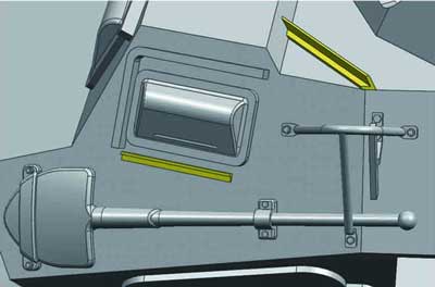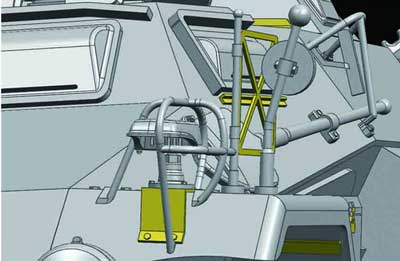 ![]() 設計図から起こしたCG画像です。 ![]() 銃塔は前面が大きく切り裂かれ砲を操作できるようになっています。 また、銃塔のクラッペが鋳造製のタイプに変更されています。 ![]() 砲自体は操縦席上面に固定されています。 ![]() 2重装甲を持つ防盾です。 ![]() 後期型車体ではノテックランプにガードが着きます。 ![]() サイドの方向指示器にもガードが付いています。また、銃塔だけでなく 車体のクラッペも鋳造製のタイプに変更されています。 ![]() タイヤはトラックタイプのホイールも装着できます。 ![]() トラックタイプのホイールは前輪と後輪の付け方が裏表逆になる付け方です。 ![]() 無論、車内の再現も今までどうりされています。 ![]() 装備品の取り付け方なども変わっています。 ![]() エッチングパーツは専用の物が入っています。 ![]() デカールは写真で見られるニックネームも入っています。 |