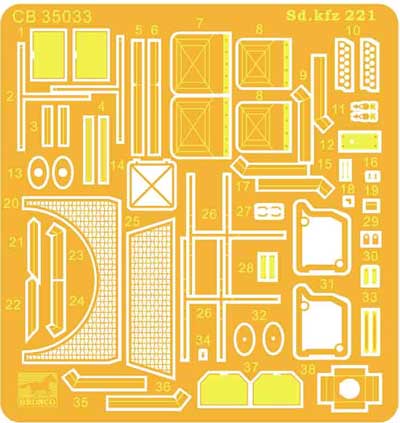 ![]() ![]() パーツ全体です。対戦車銃の他に後期型のパーツも追加されています。 ![]() トラックタイプのホイールです。 ![]() ![]() 後期型の特徴である、鋳造製クラッペです。 ![]() 銃塔も切りかかれたタイプが入っています。 ![]() 方向指示器のガードです。 ![]() 対戦車銃の弾薬箱の裏面です。 ![]() そしてこれが対戦車銃の弾薬です。弾薬箱に入れることが出来ます。 ![]() 対戦車銃の防楯です。二重構造の防楯は貼り合せて再現します。 ![]() 砲の複座部です。 ![]() ![]() 砲身は砲口はスライド金型で開口済みです。 また砲身途中にある砲身交換時の滑り止めも入っています。 ![]() 砲の照準、操作部です。 |