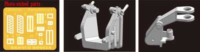 ![]() パーツ全体です。2門分のパーツが入っています! この値段で2門分、お買い得です! ![]() 砲口のマズルブレーキ部です。スライド金型で砲口も開口しています。 ![]() 左右に分割された駐退復座機です。 ![]() 照準器と操作部です。丸ハンドルでは無くグリップを握って 操作するタイプです。 ![]() 空挺型の特徴の大きく曲げられた下部砲架。射撃時は 車輪を引き上げ直接この部分を地面に設地させ使用します。 ![]() 空挺用は軽量化のため小型の車輪です。 ![]() 車両牽引用のトレーラーのフレームです。 ![]() トレーラーの牽引フック部。スライド金型で一体化されています。 ![]() トレーラーのタイヤです。トレッドパターンも良く再現されています。 ![]() 歩兵運搬用のトレーラーです。底にすのこ状のモールドもあります。 ![]() 本体下に付くフレームです。 ![]() 独特のスポーク形状を持つタイヤです。 ![]() 砲弾です。弾薬箱にも入れた状態にも再現できます。 |