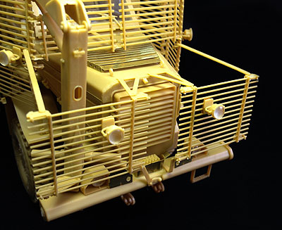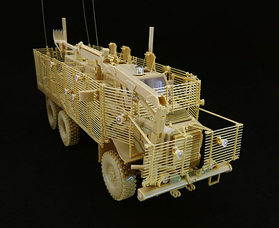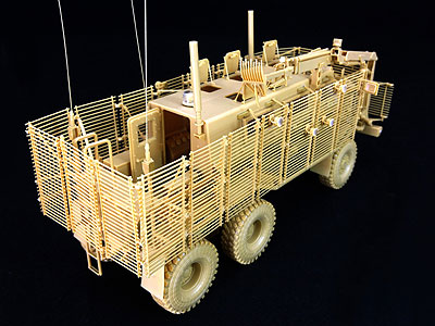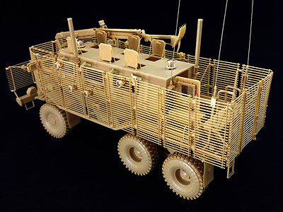 ![]() 車体下面です。爆風を受け流すようにV字型になっています。 ![]() サスペンションはオーソドックスな板バネです。 ![]() 下面のギヤボックスの防護板です。ここ以外はほとんど駆動系の 防護が無い状態です。人員の防護を優先した設計です。 ![]() 車体上部の兵員スペースです。窓枠の厚みから防弾ガラスの厚みが 推測できます ![]() フロントのラジエータースリットです。 ![]() 内装には衝撃吸収のインナーが張っています。 ![]() シートにはシートベルトのモールドが入っています。 ![]() タイヤには刻印の彫刻が入っています。 ![]() 車体上に樹立するセンサーやアンテナ類です。 ![]() ボーナスパーツの遠隔操作銃塔は機銃がどちらか選べます。 ![]() スラットアーマーは細いですがきれいに成型されています。 ![]() スラットアーマー各所に付けられるライトです。 |