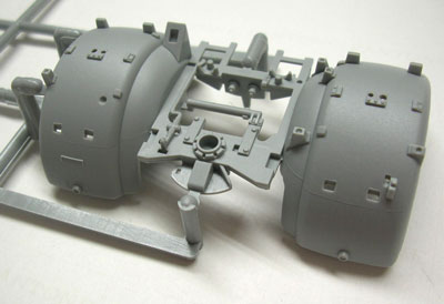 ![]() 砲身の根元の部分です。スライド成型で基部が開口しています。 ![]() 駐退復座機の下部レールです。俯仰用のギアも分かります。 ![]() 砲身の先端部と閉鎖器です。スライド成型されています。 ![]() 脚部の旋回テーブルと砲基部の防楯です。 ![]() 上部砲架側面です。砲耳が端にあるのが分かります。全体の形状 はシンプルですが様々の機器が装着されます。 ![]() 独特の形状を持つ大型防楯です。外側の部分は牽引時には 折りたたむことができます。 ![]() 脚部です。左右の脚は前方に向かって水平に折りたたみます。 ![]() 四角い板が駐鋤です。三角の穴に楔を打ち込みます。 |
