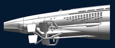 ![]() 対空機銃が増設された艦橋部。 ![]() 後部魚雷発射管が分かります。 ![]() 艦首部です。 |