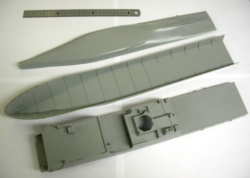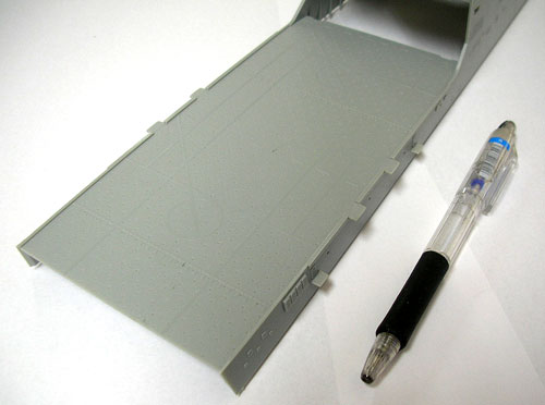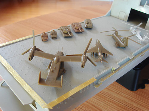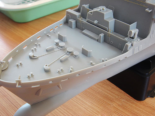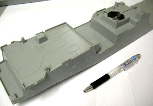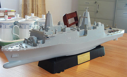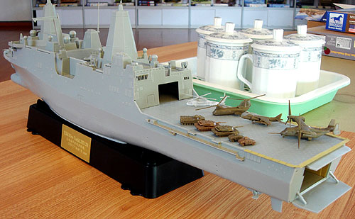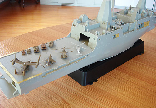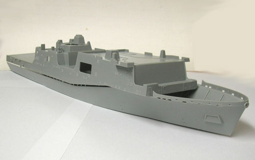 ![]() 基本船体です。上部に30cm定規がありますので大きさを比較してみてください。 ![]() 艦底部です。別パーツとなっているので塗装時に楽そうです。 ![]() 艦首に付くバルバスバウは別パーツとなっています。 ![]() スクリューと舵です。スクリューは5枚羽です。 ![]() 仮に上構造を乗せた船体です。喫水で艦底部と別パーツになっているので 艦底取り付け用の突起などを取り除くとウォータラインにも出来ます。 ![]() 後部ヘリ甲板です。表面には航空機係留用の穴が多数モールドされています。 ![]() 上部構造部です。ステルス性を考慮した構成ですが複雑な面構成となっています。 ![]() 艦内のドック部とマストです。 ![]() ヘリ甲板の格納庫底面です。格納庫は開閉選択式です。 ![]() 格納庫壁面です。ブリッジなどの窓部には透明パーが付属しています。 ![]() 搭載艇です。このタイプの他にも別タイプの搭載艇もあります。 ![]() 大きなパーツが目を引きますが細かなパーツも多くあります。 ![]() ブリッジのマスト基部です。 ![]() デカールです。大きな星条旗にヘリ甲板のラインなどが含まれます。 |