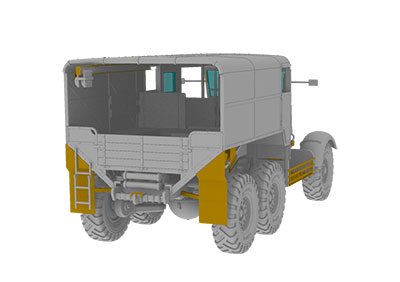 ![]() 砲員と弾薬などを運搬するため後部がキャビン状になっています。 ![]() 荷台上部には弾薬類を積み下ろすクレーンレールが付けられています。 ![]() 荷台の下側にはウインチ用のローラーが見えます。 ![]() 運転席下には大きな荷物ラックが付けられています。 ![]() ボンネットカバーは脱着選択式で外せばエンジンも見れます。 ![]() ![]() ![]() シャーシ裏側です。複雑なシャーシも完全再現されています。 ![]() キャビン内部です。荷台前方に砲員席があり後部は荷物・人員 兼用の荷室となっています。 |