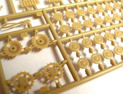 ![]() パーツ全体です。色の明るいランナーがクーゲルブリッツ用です。 ![]() 車体上面です。拡大されたターレットリングや斜めになった 操縦手ハッチなどクーゲルブリッツの特徴が分かります。 ![]() 内部砲塔です。大きな円筒形が基本となっているのが分かります。 ![]() 外周砲塔です。こちらは円錐形状です。 ![]() 内部砲塔の円筒部に装着されるボルト止めされた部分です。 ![]() 装填手ハッチ裏側です。乗員ハッチはすべて 別パーツで裏側も再現されています。 ![]() 機関砲身です。特徴的なパイプを並べたような形状の マズルブレーキもシャープに成型されています。 ![]() 車体部は精密さに定評のあるレベル製となっています。 ![]() 車体裏側もしっかりとモールドされています。 ![]() キャタピラはある程度つながった物と一枚づつの組み合わせです。 |