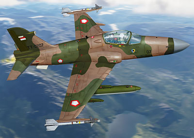 ■英国ブリティッシュ・エアロスペース(BAe)が開発した練習機を機関砲ポッド、空対空ミサイル(サイドワインダーなど)、爆弾、ロケット弾を搭載可能したインドネシア空軍戦闘機。短距離滑走路からの使用、基本の練習機とも使用可能。1990年後半から2000年代初頭に配備。パーツ174点。エッチングパーツと塗装用マスキングシール付。3タイプのマーキング選択可能。