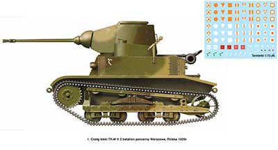 ![]() RPM 1/72 RP72510 ポ軍・TKW-II偵察戦車・20mm機関砲搭載型 価格はリストに掲載されています。ご覧下さい。 開戦前のポーランド軍主力タンケットTKシリーズには 多くのバリエーションが作られました。TKWシリーズは TKに回転砲塔を搭載した試作車です。砲塔は戦闘室 右側に搭載され左側の操縦手用には張り出した キューポラーが設置されました。そのため操縦手側には 旋回できず限定旋回となっています。砲塔は円錐型で 機銃部が箱型に張り出しています。左右の重量バランスや 乗員の意思疎通の困難さが指摘され試作で終わりました。 ![]() ![]() 非常に小さな車両ですが車内も再現されています。 ![]() |