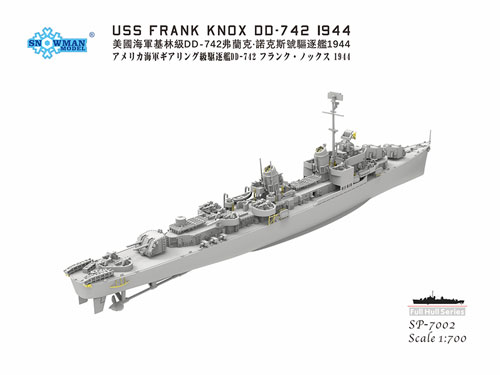 | ■大戦中の米軍主力駆逐艦フレッチャー級の最終発展型がギアリング級です。就役は1945年3月と大戦終結間近でしたが戦後も長く、各国で運用されました。前級からの5インチ両用連装砲が3基搭載され5連装魚雷発射管が2基が主要な兵装でその他に対空火器や対潜装備など充実した装備を持っていました。また、船体が拡大され航続距離も向上したのが特徴です。建造は1945年から1952年まで行われ合計96隻が生産されました。キットは1隻分のフルハルパーツ付属追加でボーナスキット・1/72スケールの同駆逐艦用2連装砲塔がついています。エッチングパーツ付。 |
