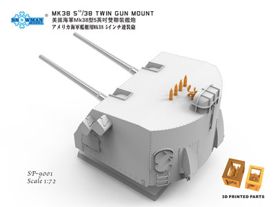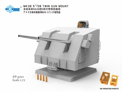 ■1945年のキャリング級駆逐艦用主砲のみのモデル。3Dプリントパーツの照準器なども付属。エッチングのネームがついています。