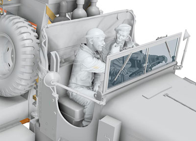 | ■シリーズ5のM1A1は1943年に登場し、約3,500台のシリーズ5レッカー車が製造されました。最も顕著な特徴は、新たに搭載されたフルパワーのクレーンであり、軍用仕様の車両前部とキャンバストップ、折りたたみ式のフロントウィンドスクリーンを備えたキャブが組み合わされていました。さらに本キットは運転手とその助手2体のレジンフィギュア、3Dプリントパーツのキャンバストップパーツが追加されお値打ち感あるセットです。臨場感あるフィギュアと実感のある3Dプリントパーツがより実車に近い迫力を醸し出すことでしょう。