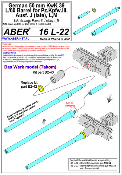 独・5cm Kwk39 L/60戦車砲身・III号J/L/M型用