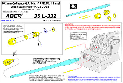 英・A34コメット巡航戦車用77mmHV砲身+ベサ機銃身2本(タミヤ)