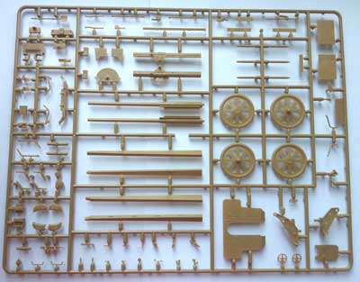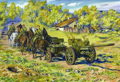 ![]() ICM 1/35 IC35802 露・76.2mmF22速射砲&牽引リンバー+兵士3体+馬6頭WW2 価格はリストに掲載されています。ご覧下さい。 F22はソ連が第一次大戦のM1902/30などの旧式火砲を更新するため 1936年に開発した野砲です。当時列強は野砲/対空砲兼用砲を開発 していると思われたため仰角75度まで指向できます。また車両牽引も 考慮されて50kmまでの牽引速度に対応できる砲架になっています。 車両牽引も考慮されていましたが馬曳でも運用されその場合には弾薬 リンバーと共に馬6頭立てで牽引されました。1936年から生産されました が重量がそれまでより過大になるなどしたため軽量のUSVの開発も進め られました。しかし1939年に生産が終了するまでに3000門近くが生産 され独ソ戦時にも野砲の主力として活躍し、捕獲したドイツ軍でも活用され ました。 ![]() F22砲のランナーです。Pak36(r)とは別金型となっています。 ![]() ロシア型の車輪はスポークタイプとなっています。 ![]() オリジナルの防楯です。ドイツ改造型との違いが分ります。 ![]() 脚部です。対角線で分割することで上側面のモールドを再現しています。 ![]() 砲身は一般的な左右分割です。 ![]() 弾薬と弾薬箱です。これもオリジナルの薬莢が再現されています。 ![]() 馬と御者のランナーです。左側は上下同じランナーです。 ![]() 今回の新しいランナーです。それぞれに御者が2体付いているので 全て別ポーズとする事が出来ます。 ![]() 馬の胴体です。 ![]() 頭部です。馬もそれぞれポーズが違います。 ![]() ![]() ![]() ![]() 御者達の表情です。 ![]() 服もこの様にシャープなモールドです。 ![]() 御者がまたがる馬に装着される鞍です。 ![]() リンバーのランナーです。 ![]() タイヤのトレッドパターンを再現するために輪切り分割されています。 ![]() シンプルながらサスペンションも付いています。 また、リンバーは馬牽引状態と車両牽引状態のどちらかを選べます。 ![]() バケツもリンバーに定位置があります。 |