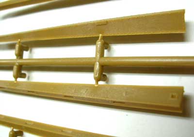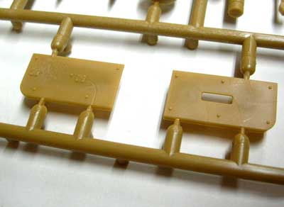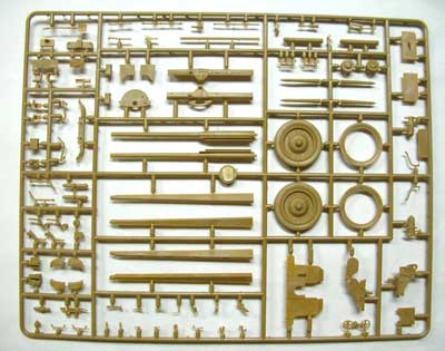 ![]() パーツ全体です。ランナー1枚にまとまっています。 ![]() 車両牽引用の空気タイヤ装備です。 ![]() 全面にリベットが入っている脚部です。スライドなどを使わずに リベットを再現するため斜めに分割など考えらえています。 ![]() ドイツ型の特徴のマズルブレーキは上下分割です。 ![]() 砲身は一般的な左右分割です。砲口部は薄く成型されているので マズルブレーキ無し状態も再現できそうです。 ![]() 防楯の前面に付けられる増加装甲です。何故か小ハッチが付いて いますが、元々の防楯上端部を切り取り低くした残りを流用している ためで、リサイクルの上手いドイツ人らしい使い方です。 ![]() 尾栓部です。垂直鎖栓式が分かります。 ![]() 砲弾と砲弾ケースです。Pak40と同じ薬莢を使える様に改造されている ため同じ砲弾ケースです。 |