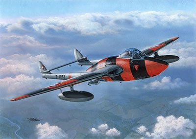 戦後第一世代のジェット戦闘機では評価の高いバンパイアは多くの国で採用されました。スイスもその一つでライセンス生産も行なわれました。そのバンパイアのバリエーションで機首の延長されたタイプでその形状から「ピノキオノーズ」と呼ばれました。