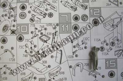 ![]() この組み立て説明書の細かさも凄いです。10番のコクピットのパーツ数 だけで10点。11番の機銃も4点のパーツです。ここに計器や隔壁などが 組み合わされて行くことになります。説明書の半分近くが内装に関して 書かれています。また各パーツの塗装の指示もバッチグー。 フィギュアも「細かいなー」と驚いているようです。 |