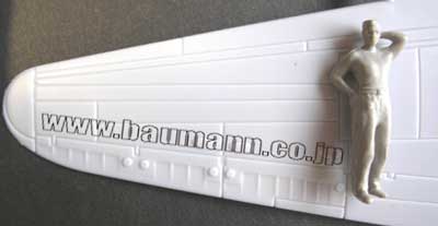 ![]() 主翼下面です。1/72スケールのフィギュアと比較していただくと それはさほど大きい物ではなかったことがお分かりいただけると思います。 スジ彫りはちょっとオーバースケールかもしれません。 |